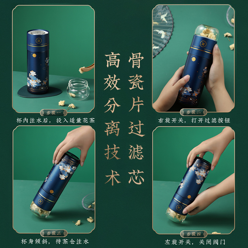 Biological tea water separation tea cup double-layer glass cup filter insulation female transparent portable portable water cup