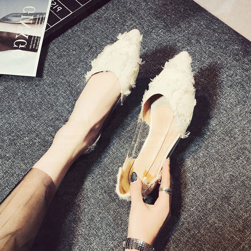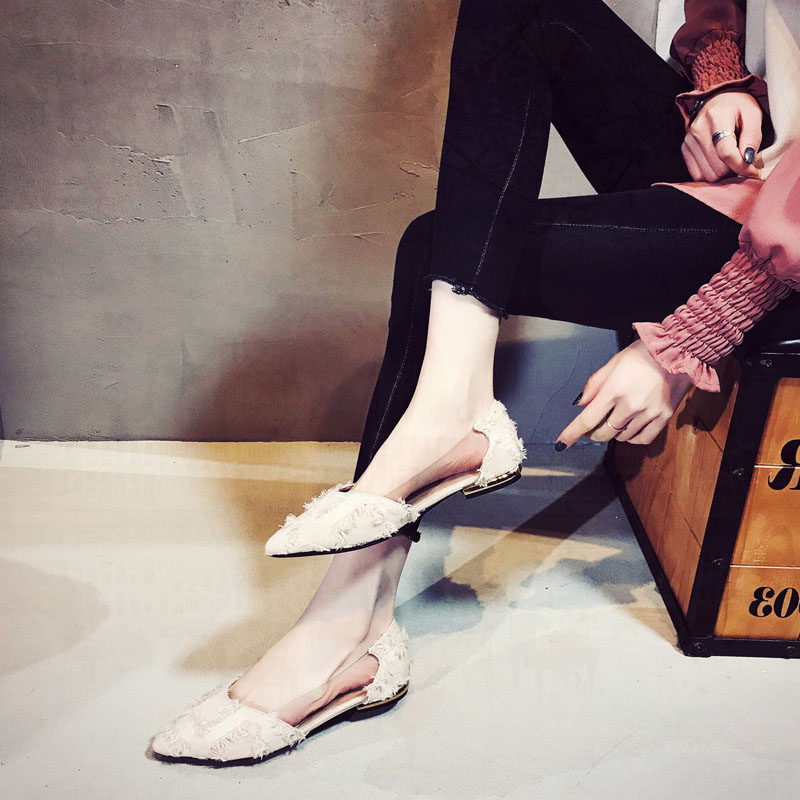 Hong Kong Flat Bottom Single Shoe Woman Pointed Shallow Mouth 2022 New Women Shoes Han Edition Spring 100 Hitch Black Mesh Red Ladyshoe Woman