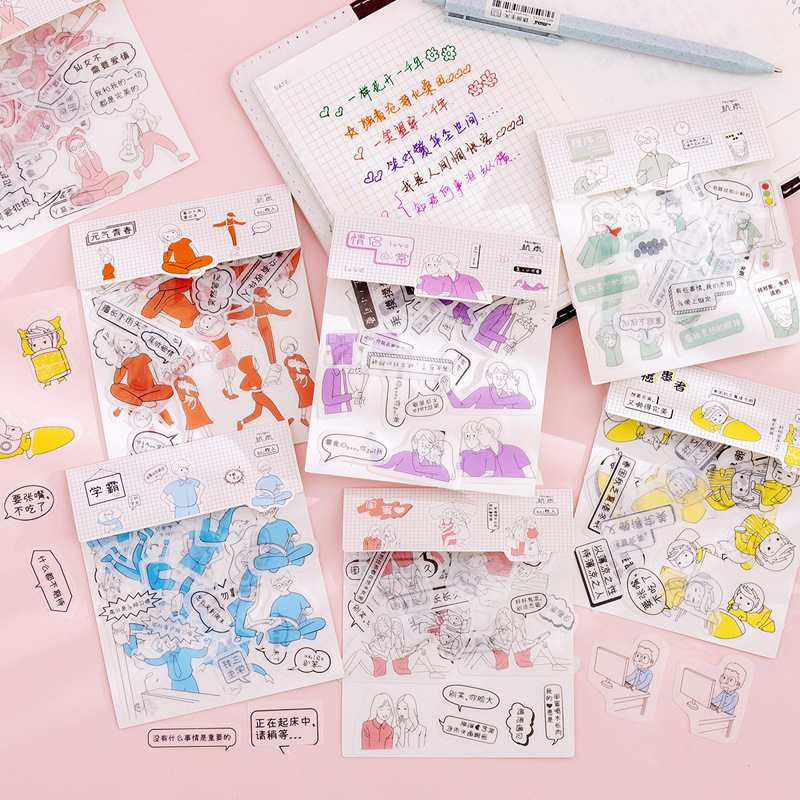 Hangin Original and Paper Sticker Packs Salt Series Small Figure Hand Ledger Diy Material Sticker Characters Diary 40 pieces