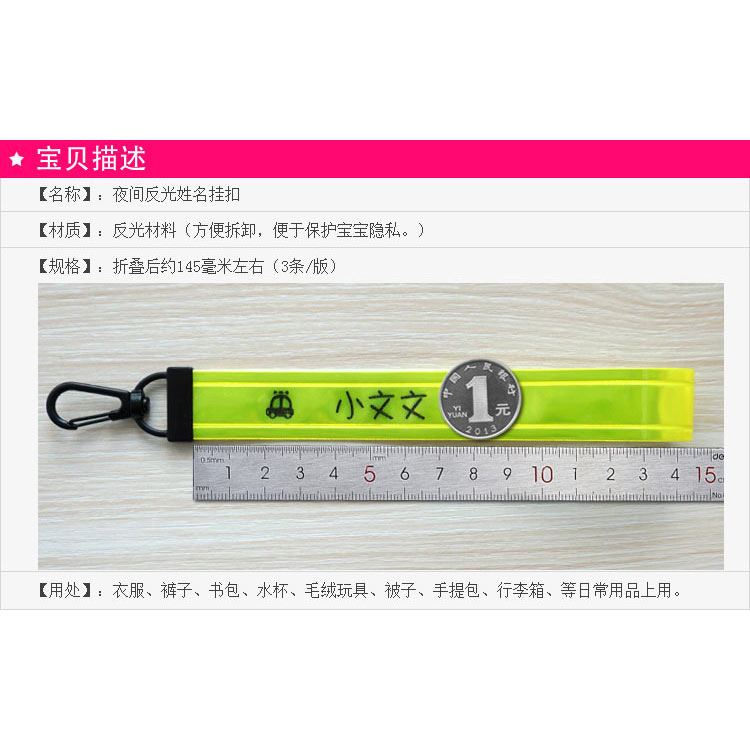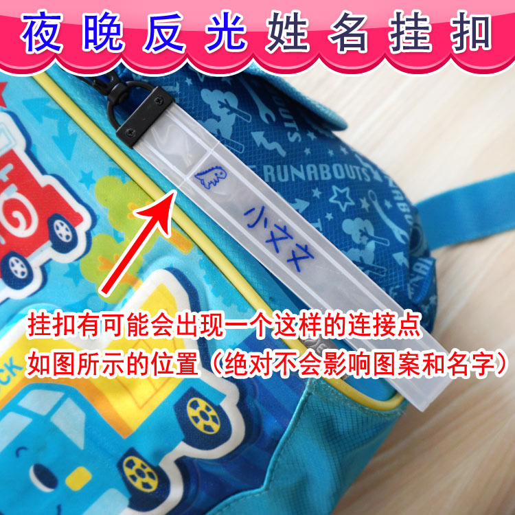 Name word sticker press-up with Kindergarten Shoulder Bag name Article Primary school Pupils Baby reflective hanging buckle Night Run Safety Schoolbag