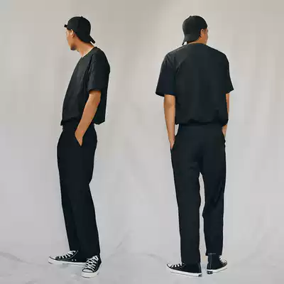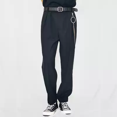 ins suit pants straight men's nine-point loose hanging sense Ruffian handsome wide leg pants old feeling pants mopping dad falling