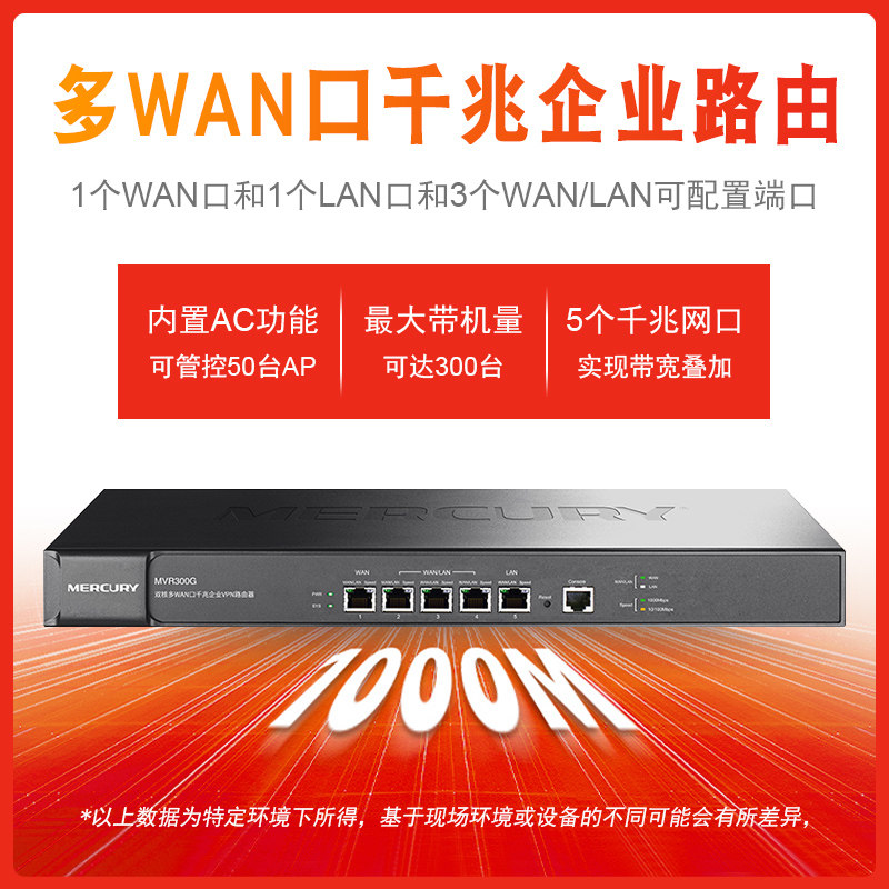 Mercury MVR300G dual core Gigabit more than WAN port enterprise grade cable router Internet access management wireless AP WIFI controller AC dual bandwidth 58G commercial bandwidth overlap overlap