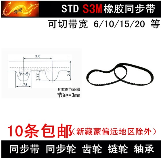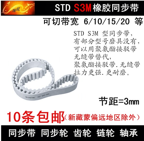 Timing belt S3M294 S3M300 S3M303 S3M306 Timing belt Bandwidth 6 10 15 20