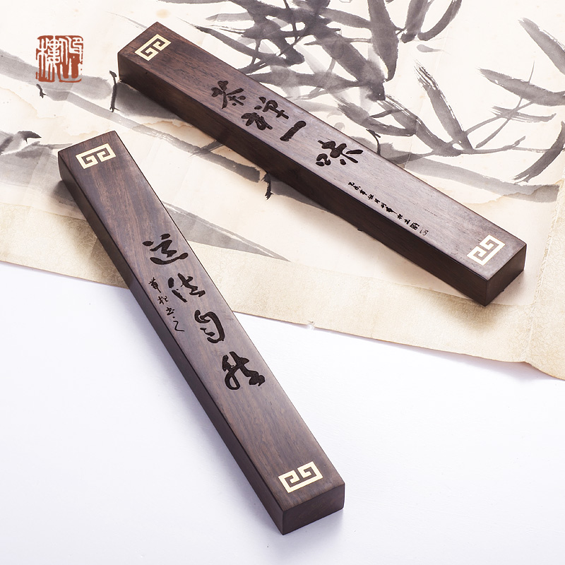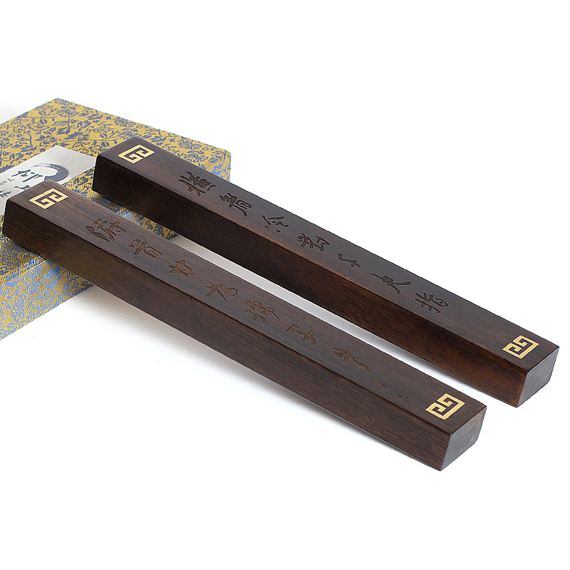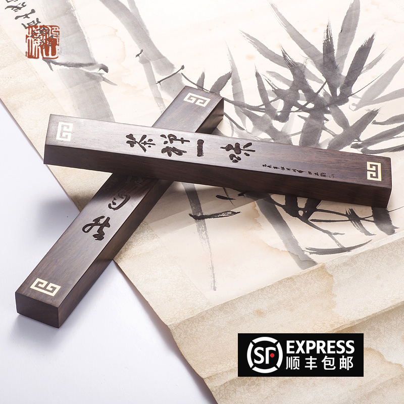 SF New Year gifts Cultural and creative gifts to map custom printed logo lettering Mahogany black sandalwood echo pattern Brass inlaid pressure paper Wenfang Four Treasures Calligraphy supplies Solid wood to the town ruler
