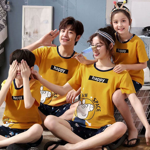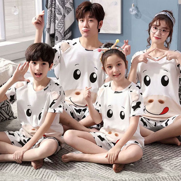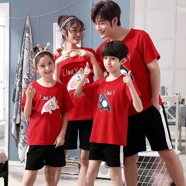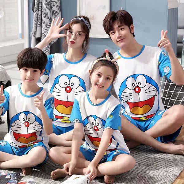 Parent-child pajamas, a family of four, three short-sleeved summer pure cotton plus fertilizer plus size fat family wear mother and daughter 3 children 4
