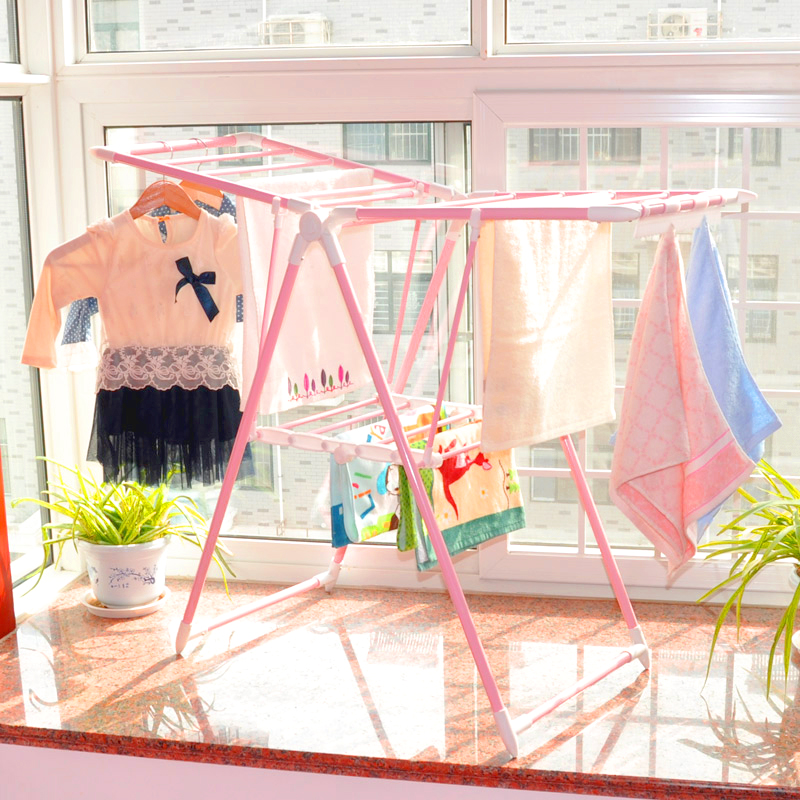 Small Number of Floating Windows Clotheshorse Infants Simple Indoor Folding Window Sill Children Midnumber Clotheshorse Pink Diaper Shelf