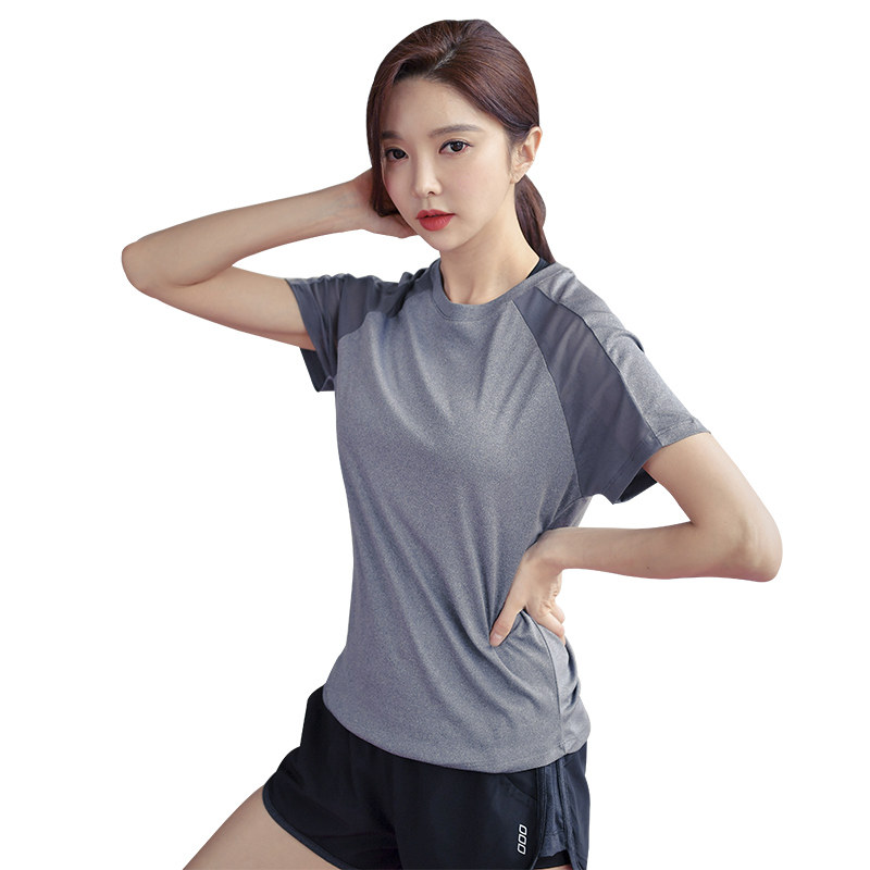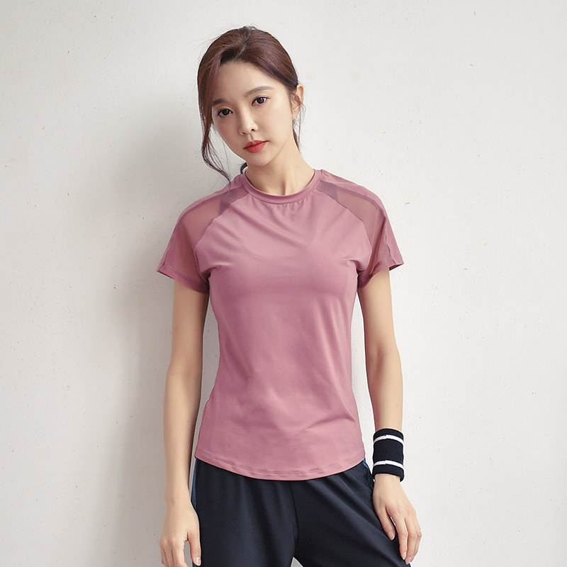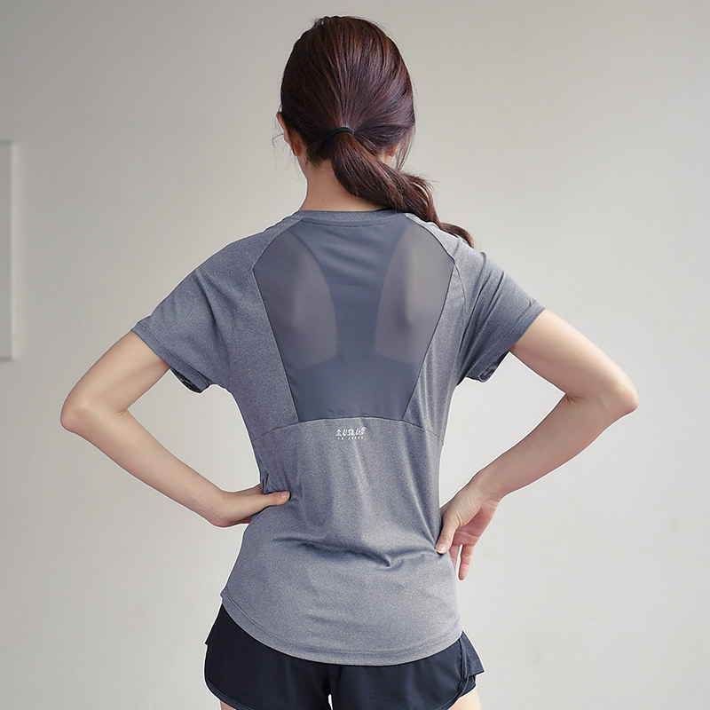 2021 spring and summer new fashion round collar blouses sexy net yarn ruffles with short sleeves gym running and sweating and breathable women
