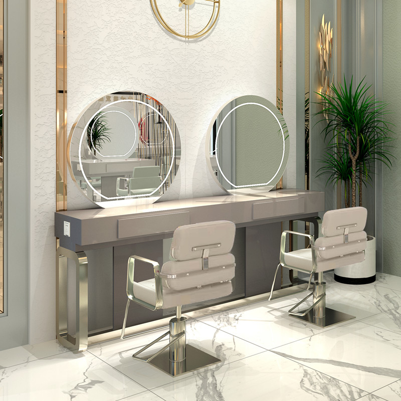 Solid wood with lamp hairdressing mirror single-sided mirror double-sided mirror four-sided mirror table Li Kun shop haircut makeup hot dyeing mirror table