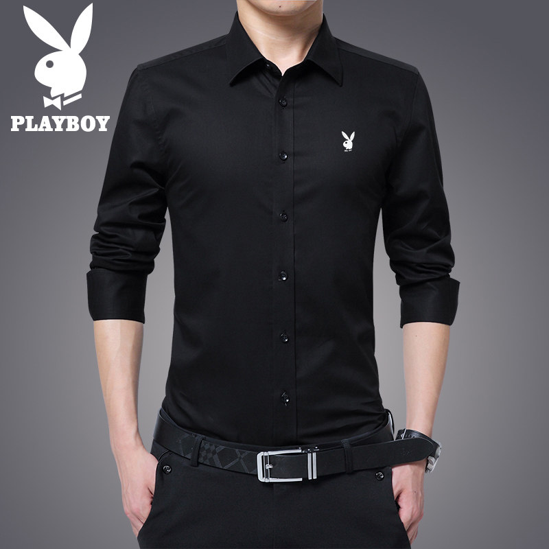 Flower Playboy Long sleeves Shirt Men's body suede Thickened Warm Business Casual Career White Shirt Man