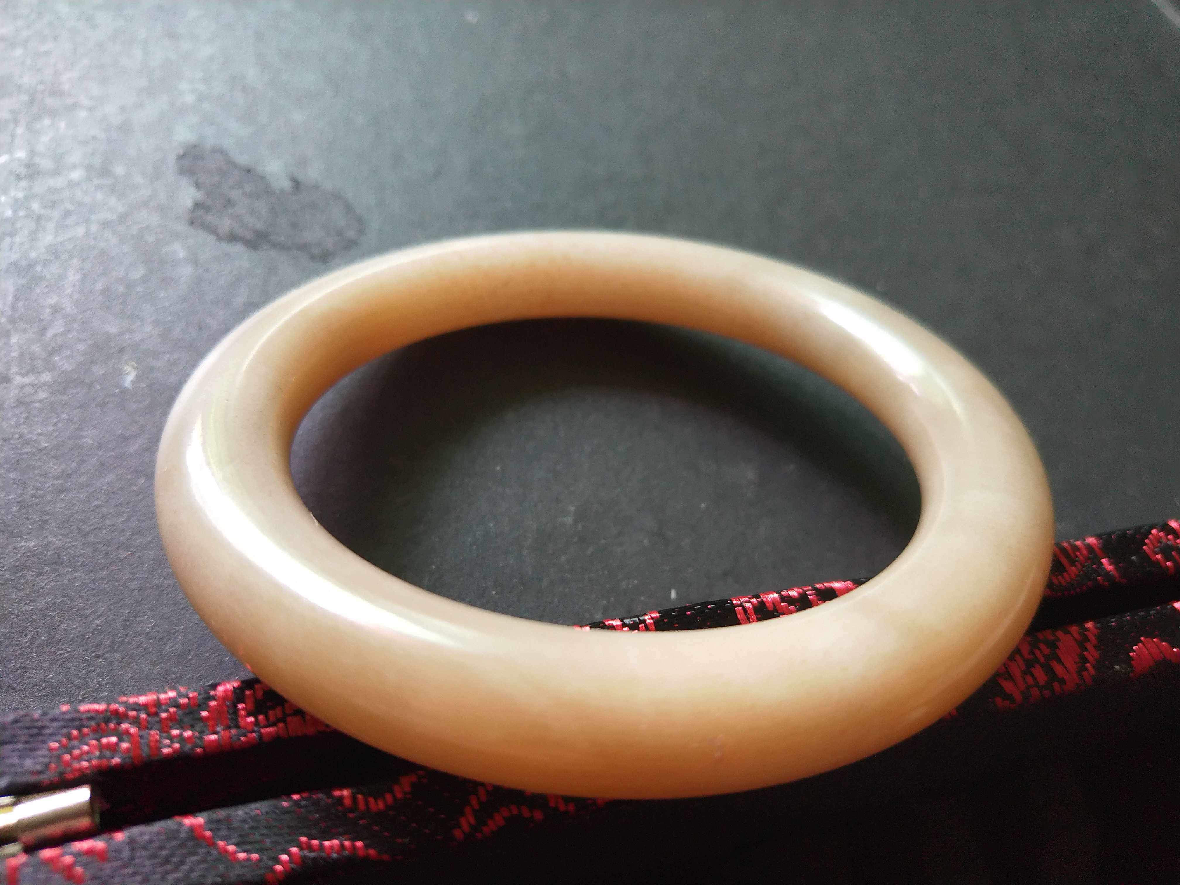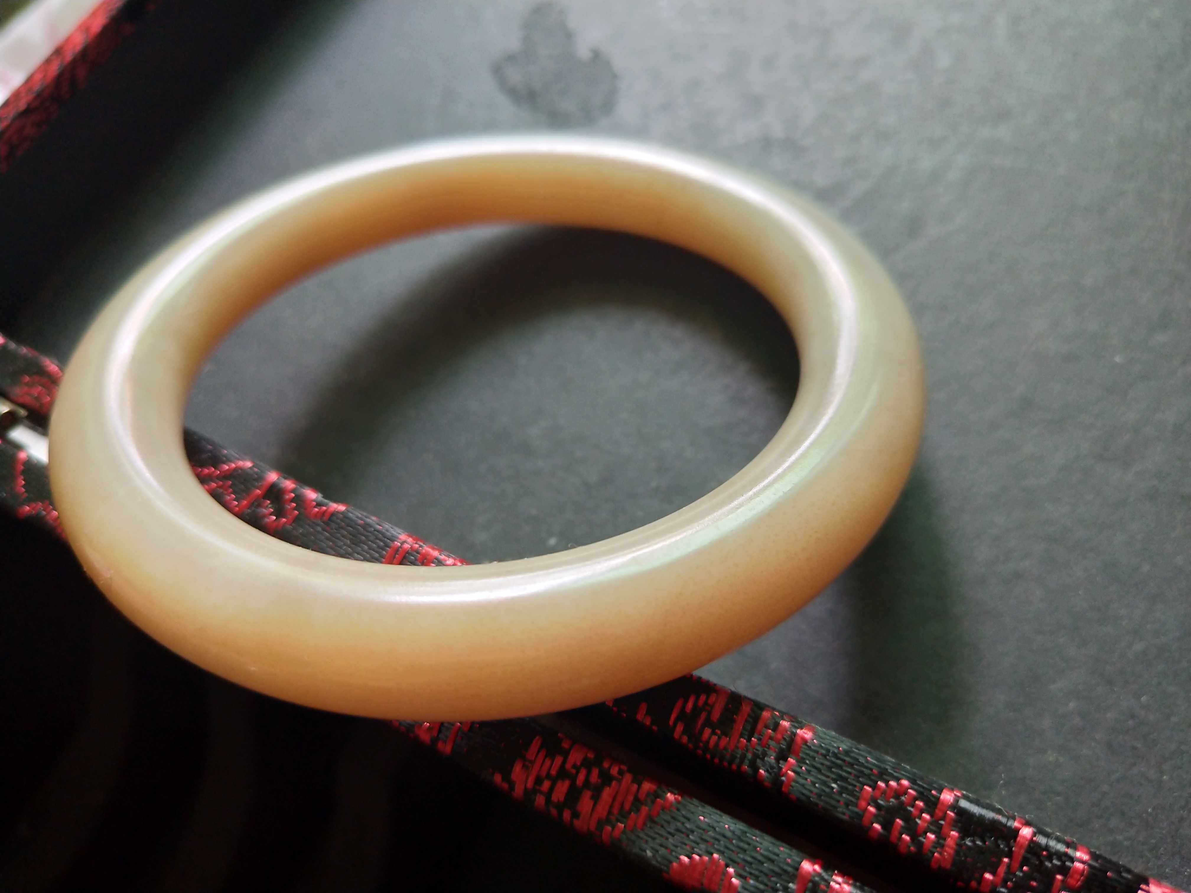 (Muzi treasurer)Hetian jade Qinghai material fine Bison Ditch fine brown sugar coarse round bar bracelet