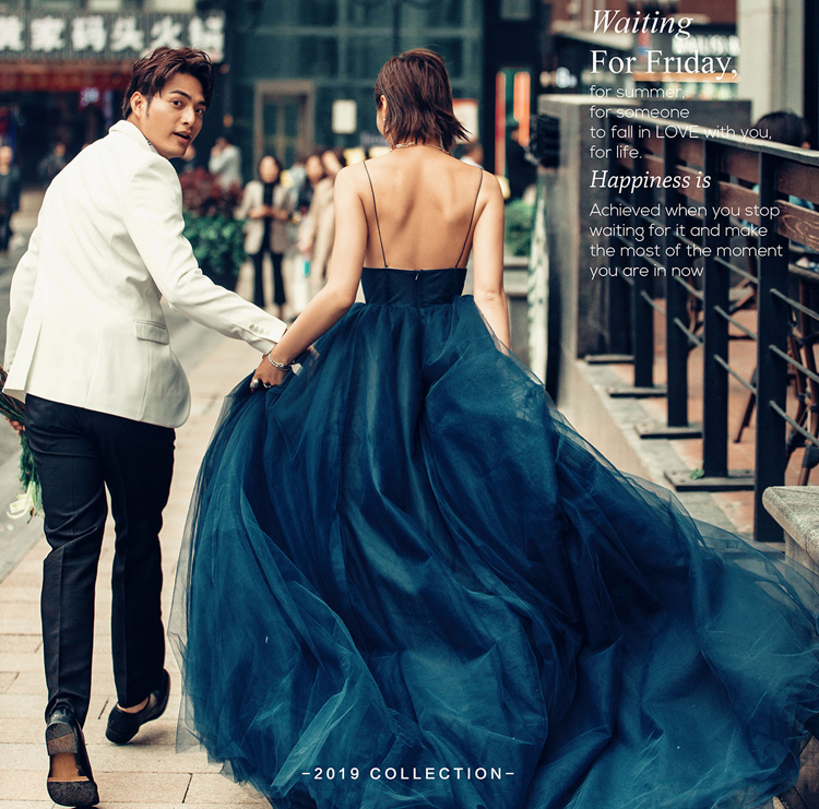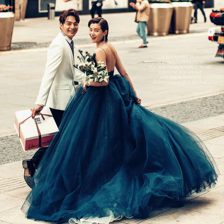 Lovers' outscene photos Deep V neckline Dress big dew back writing True blue color yarn Wedding Dress Photo Gallery Themed Street Costumes