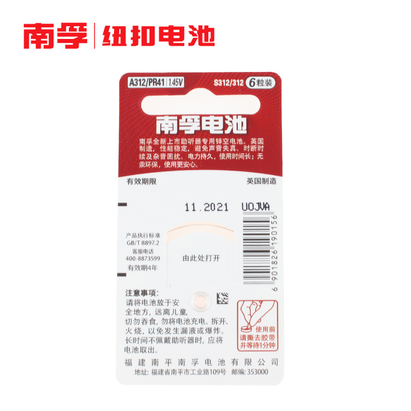 South Fu Hearing Aids Battery A312 PR41 Import button Batteries Old Cochlear 1 45V Electronic 60 Grain Boxes