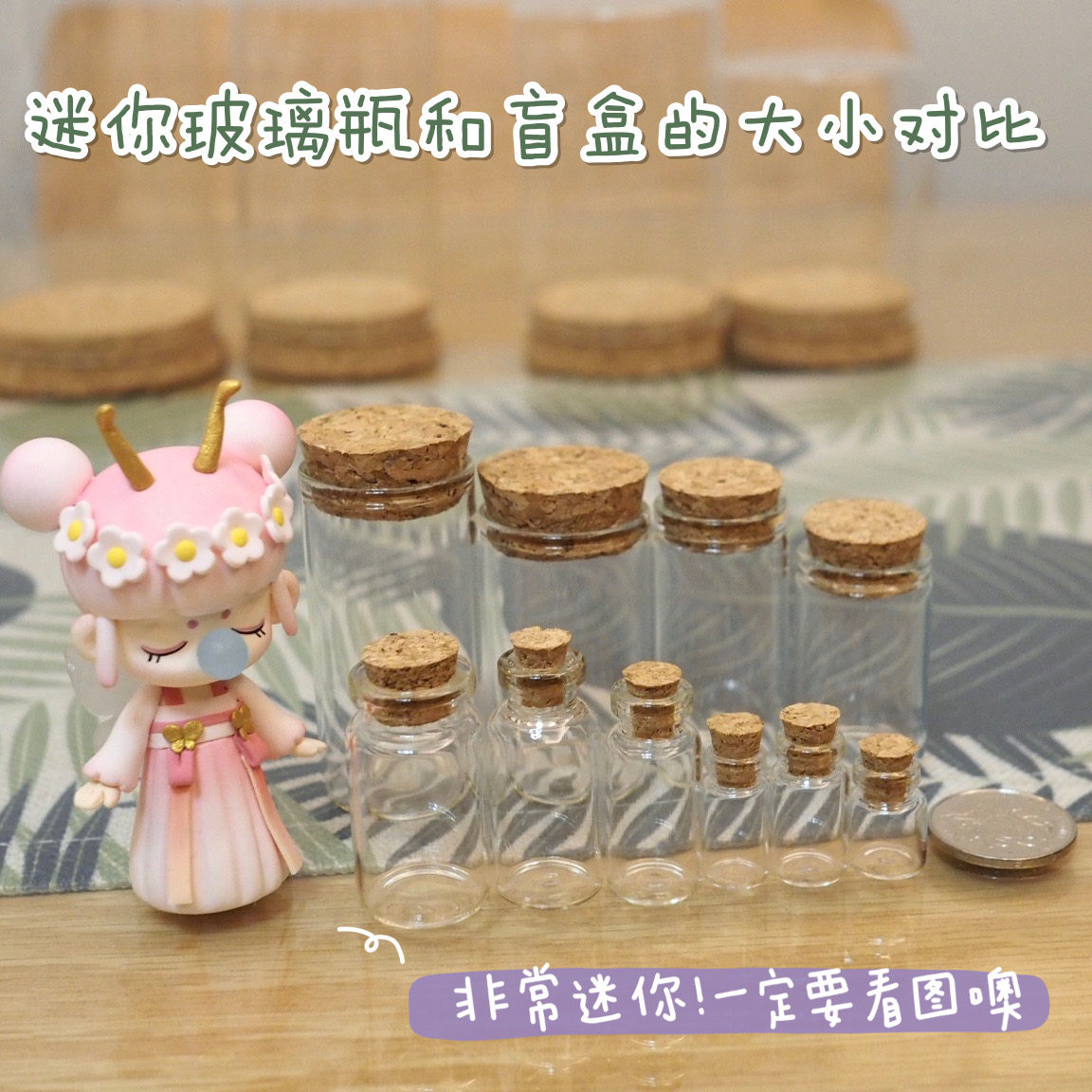 (Red Bean Clay) Yongsheng Flowers Dust Cover Clay DIY Pendulum with transparent glass hood Wooden Stopper Glass Bottle-Taobao