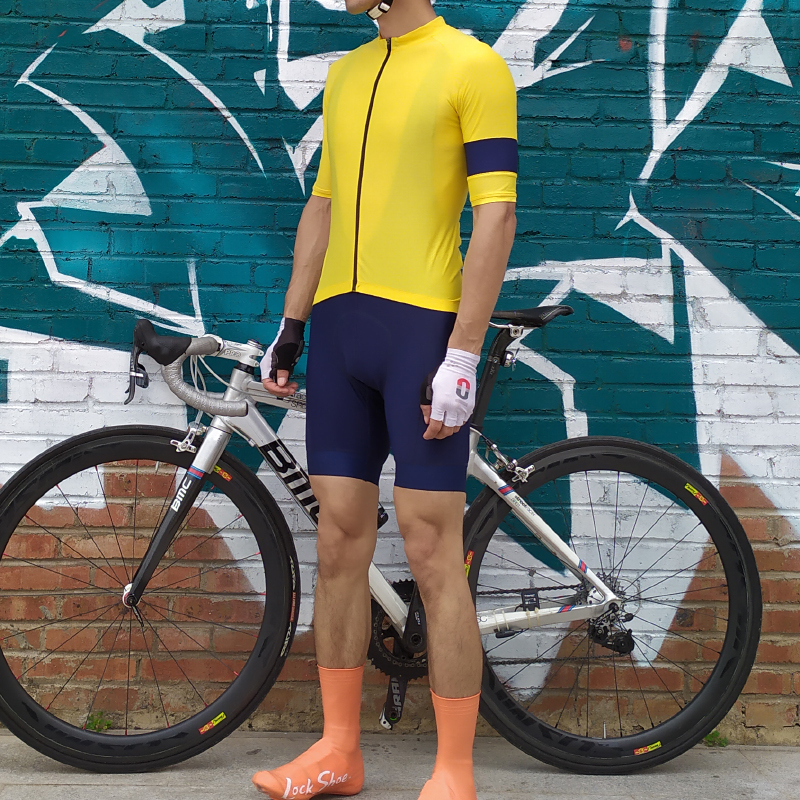 CNRIDE summer men and women's new Pure series lemon yellow retro short-sleeved cycling suit navy blue baby bag pants suit