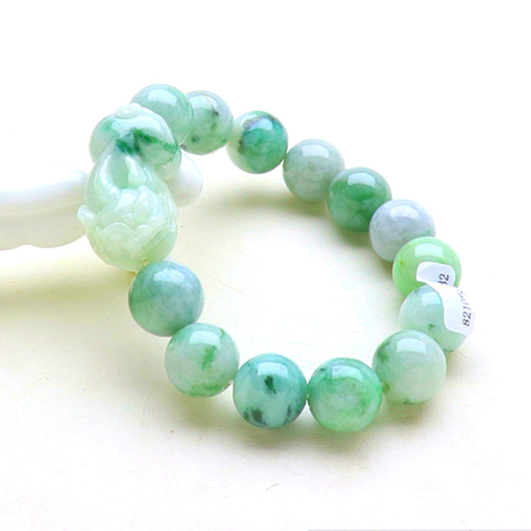 Myanmar's A goods emerald jade jade leaner hand alchemy with green hand string of jade beads jade handout men and women with certificates