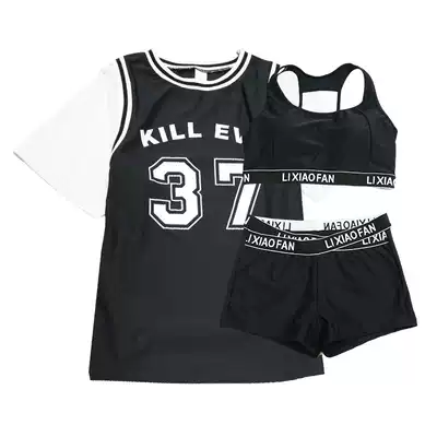 Kill Eve Li Xiaofan student short-sleeved sports three-piece suit swimsuit Two-piece female conservative belly cover student swimsuit