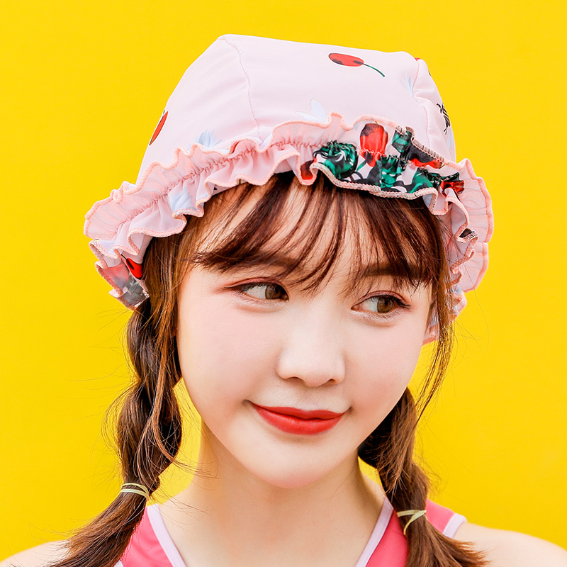Swimming cap Women's long hair special not Leehead cute Korea Japanese family with a small large head surrounding cherry to become a crowd of cloth