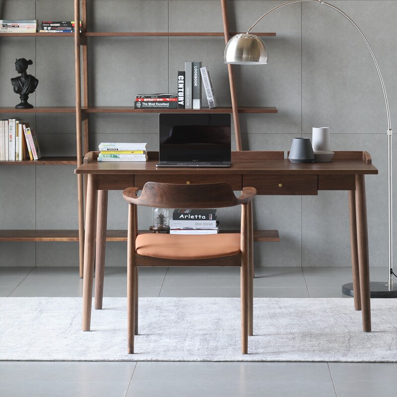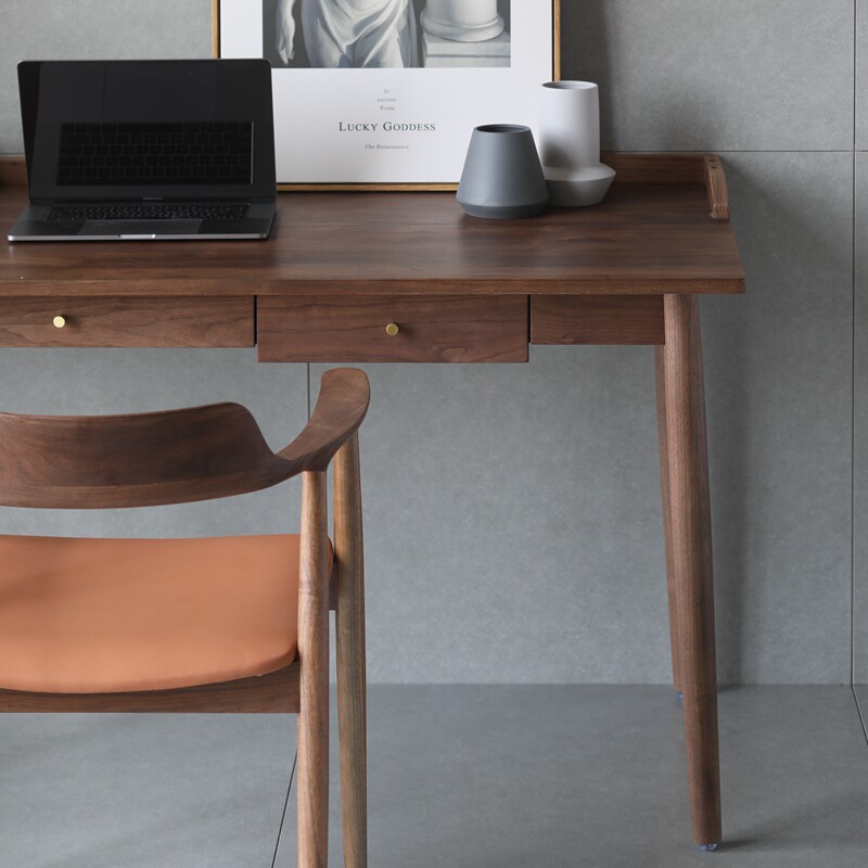 Nordic solid wood desk black walnut desk and chair combination study furniture simple computer desk desk ins