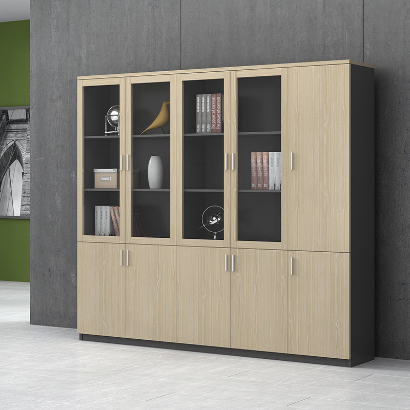 Office bookcase combined background file cabinet wooden archive cabinet with lock minimal locker