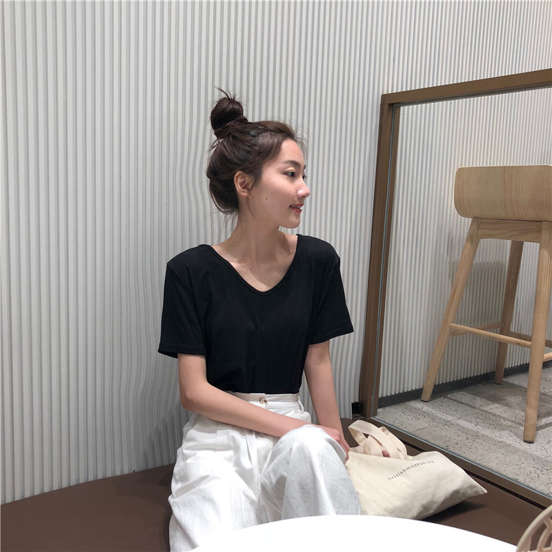 Summer Korean version of school season women's clothing short sleeve T-shirt 2022 New V collar 100 hitch-free blouses students
