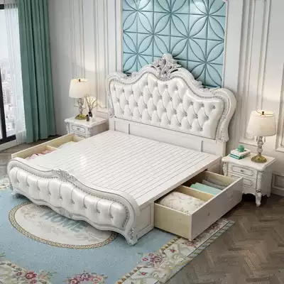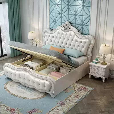 Glanburg European-style solid wood bed 1 8m double bed Leather storage bed French princess bed Master bedroom luxury wedding bed