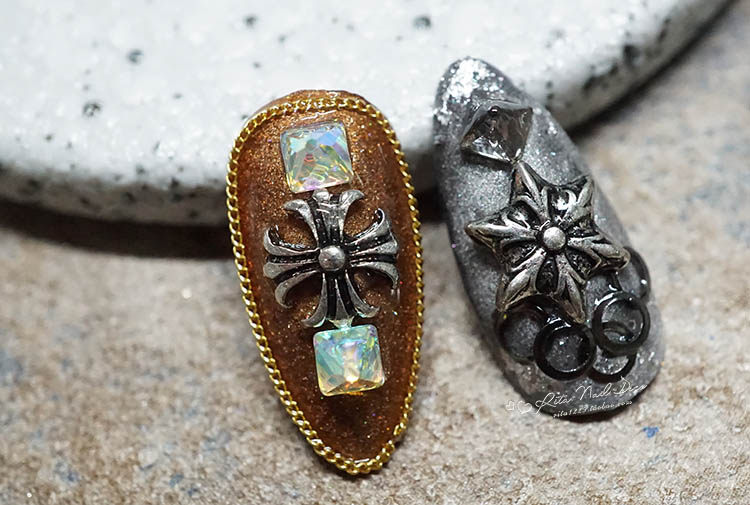 RITA NAIL4mm Pyramid Drilling punk series Meecap Alien drill Mejia flat bottom drill flame champagne