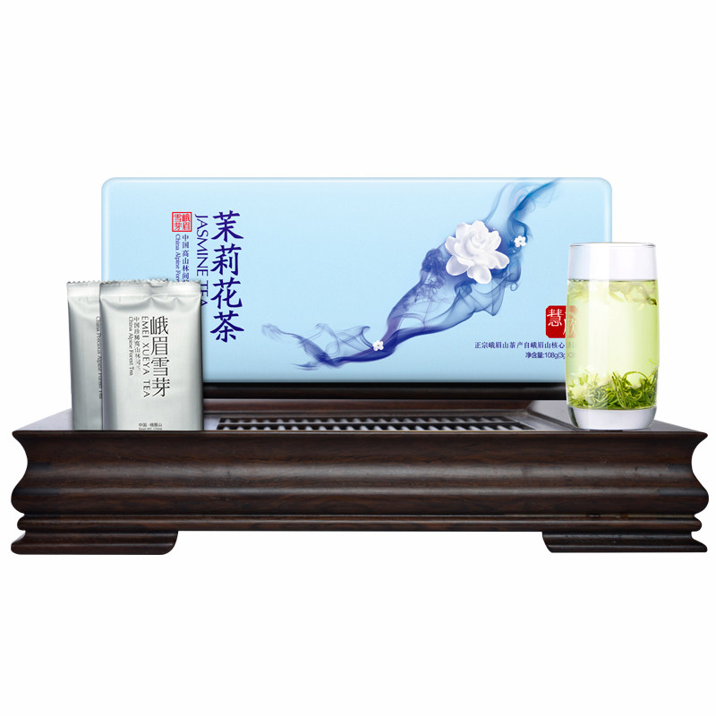 Emei Snow Sprout Jasmine Tea Huixin 108g Strong Fragrance Type Sichuan Blossom Peak Green Tea Leaves Snow Jasmine Flower Gift Box