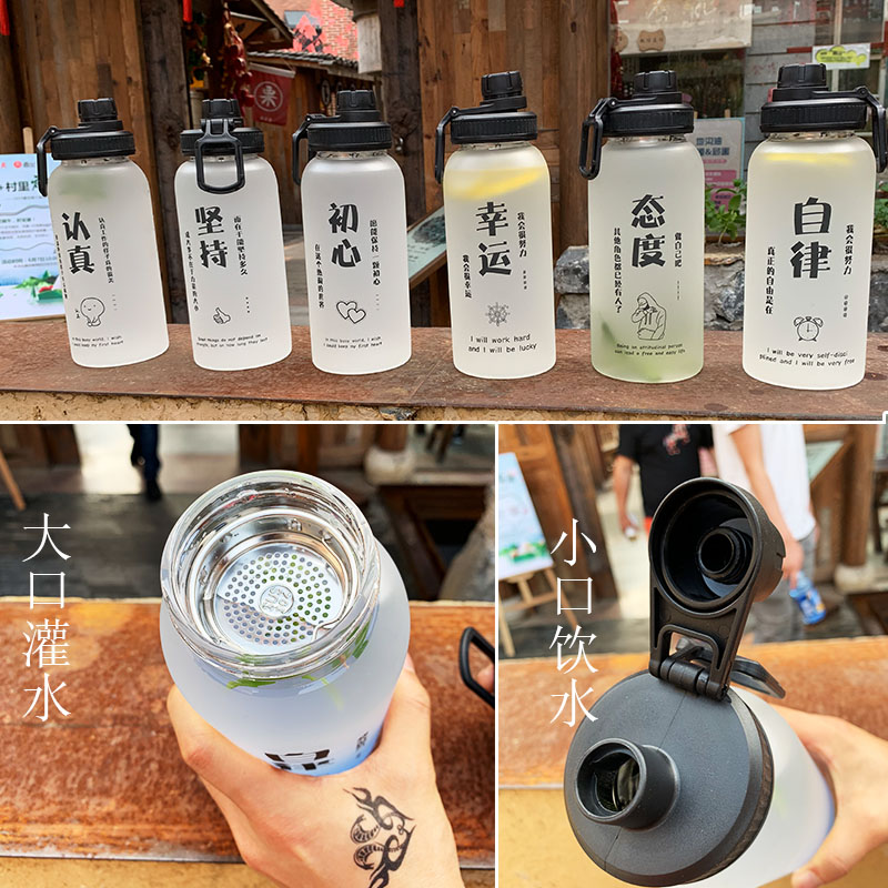 Water Cup men's glass portable super large capacity 1000ml female personality creative trend summer tea frosted cup