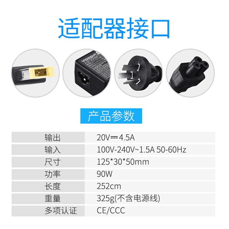 For use with Lenovo Thinkpad X1 Carbon S1 Yoga S3 S5 Notebook Power Adapter Computer Charger Cable 20V Square Mouth with Pin