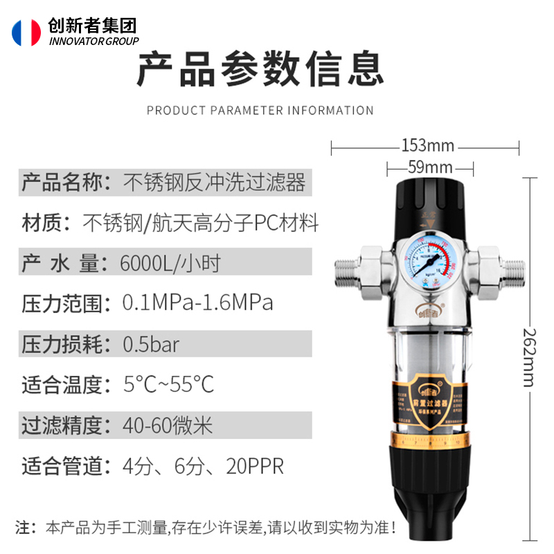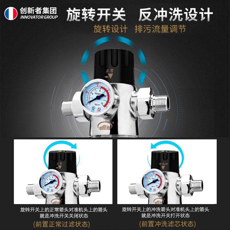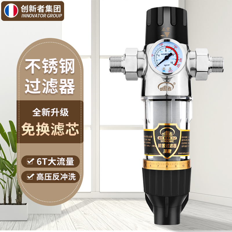 Household pre-filter stainless steel pipe tap water filter large flow whole house water purifier backwash