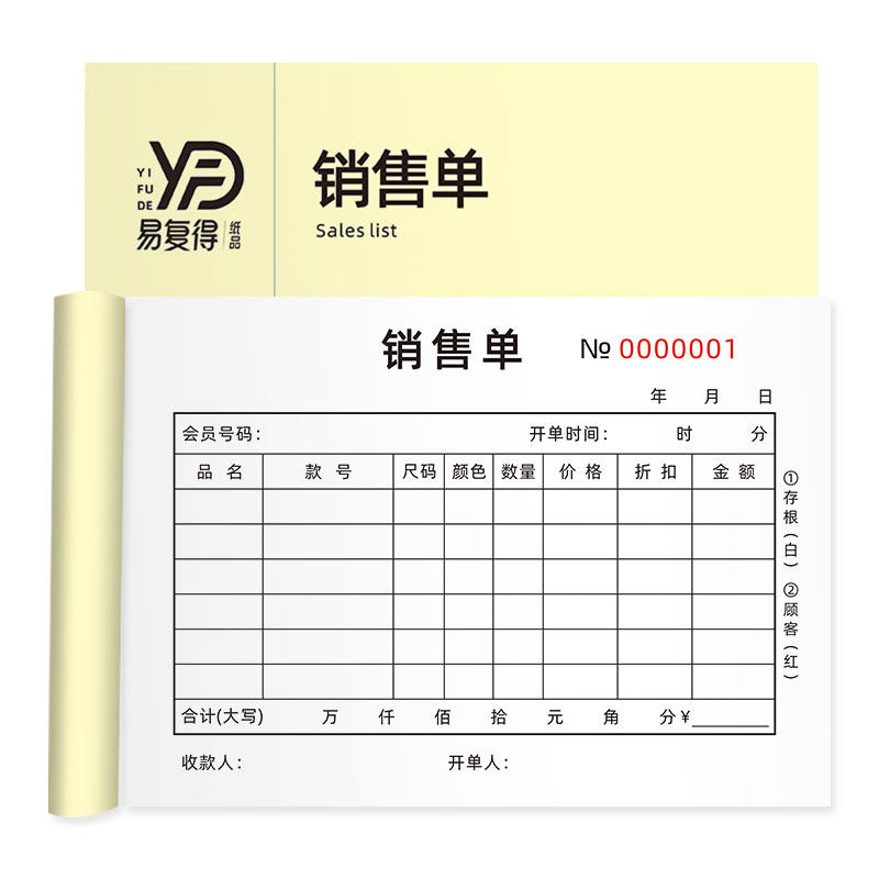Yifude paper product sales order carbonless copy paper two-way clothing store billing book sales list receipt receipt shoe store sales order order order two-part sales order delivery note receipt customization