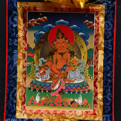 Yellow God of Wealth Thangka portrait Living room entrance Hand-painted Tibetan Tantric Buddha Hanging painting Small 36cm