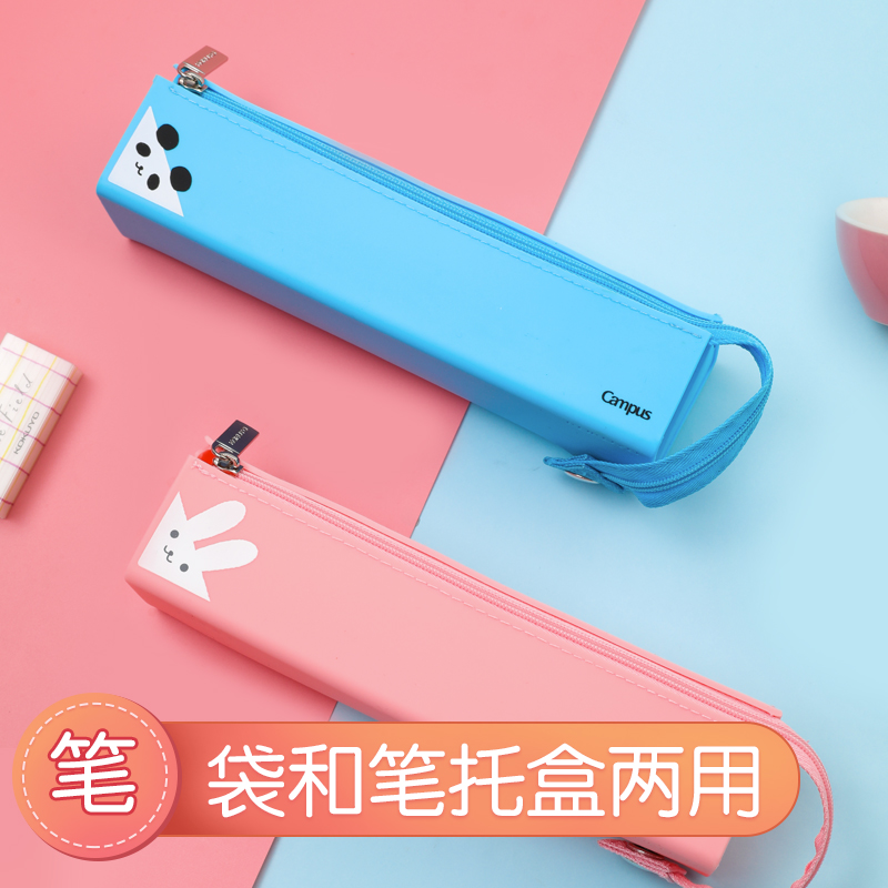 Japan kokuyo silicone pen bag cartoon student zipper storage Dirt-resistant waterproof not easy to deform
