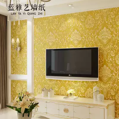 European-style non-woven wallpaper thickened 3D three-dimensional fine pressure Damascus bedroom living room background wallpaper environmental protection luxury