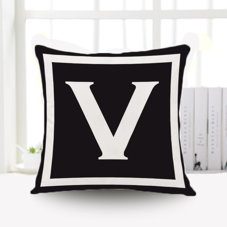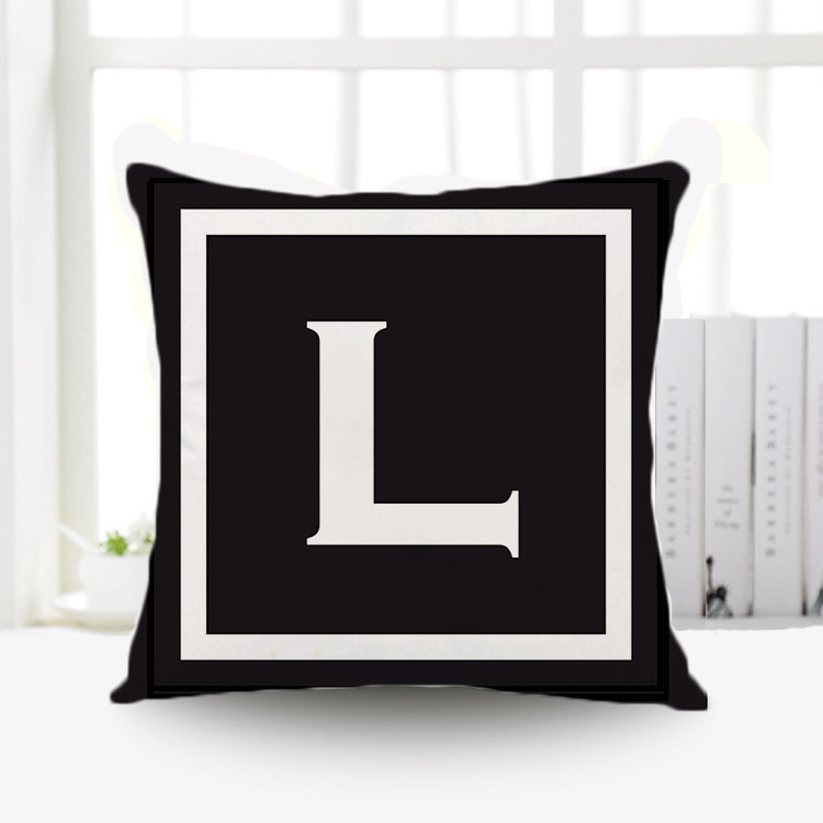 Creative 26 English letter pillow black and white sofa car Nordic pillow male pillow cushion bed back waist pillow