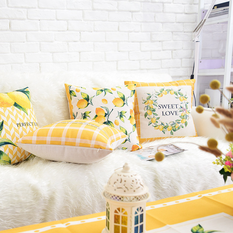 Fresh Ins American Living-room Sofa Cotton Linen Pillow Office Waist Leaning Car Back Cushion Headbed Backrest Holding Pillow Cover