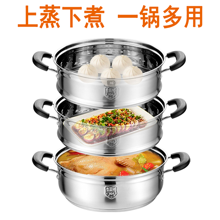 304 stainless steel steamer 1-layer 2-layer thickened soup pot domestic single-layer double layer induction stove hot pot cooking multipurpose pot