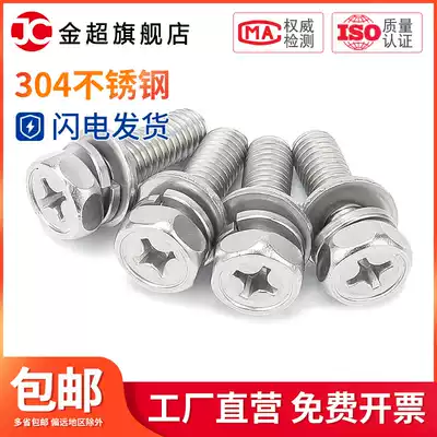 304 stainless steel cross outer hexagon three combination screw concave hole outer hexagon combination Bolt M3M4M5M6M8