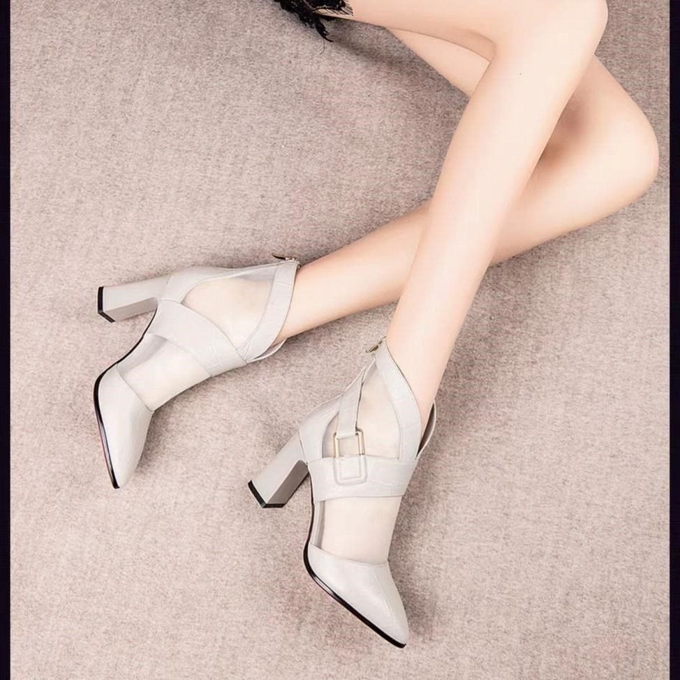 Sandals Women's 2019 Spring Pattern Leather Mesh Baotou High Heel Sandals Thick Heel Pointed Hollow Mesh Boots Large Size