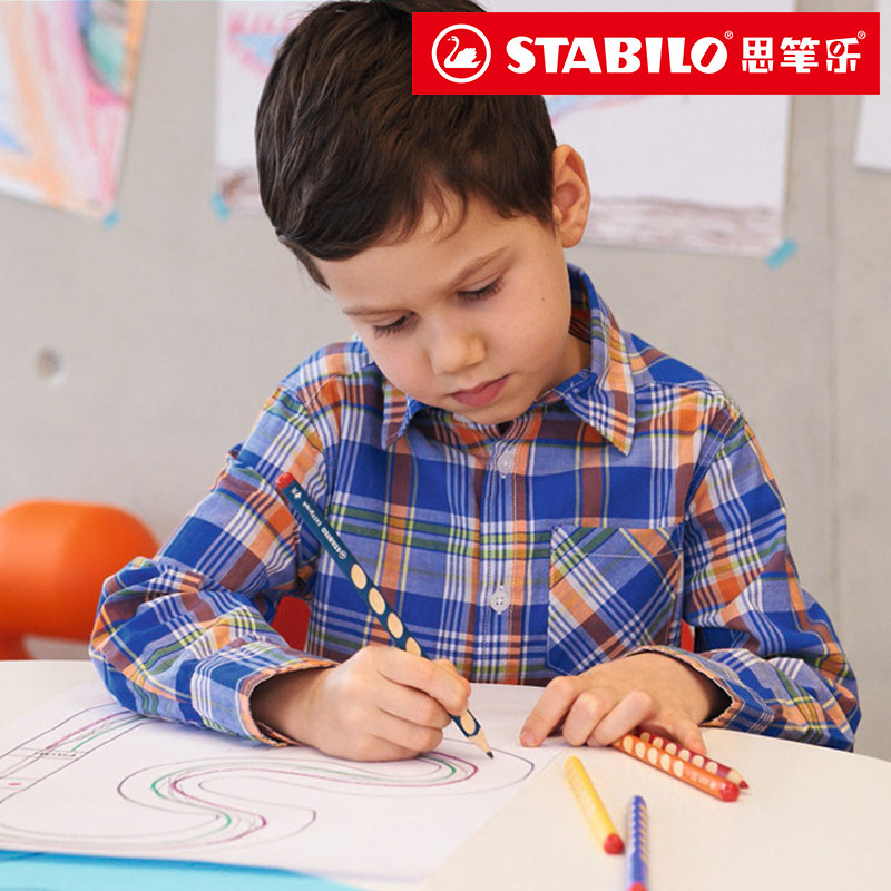 German stabilo Si Ble music 322 children Primary School students corrective grip triangle Rod thick hole pencil hb character pencil kindergarten beginner preschool posture safety