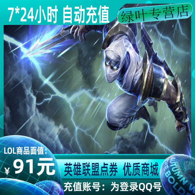 Tencent Games LOL Point Coupon) Hero League RMB91 9100 Points Voucher Number Card) Automatic Recharge) Instant to account)