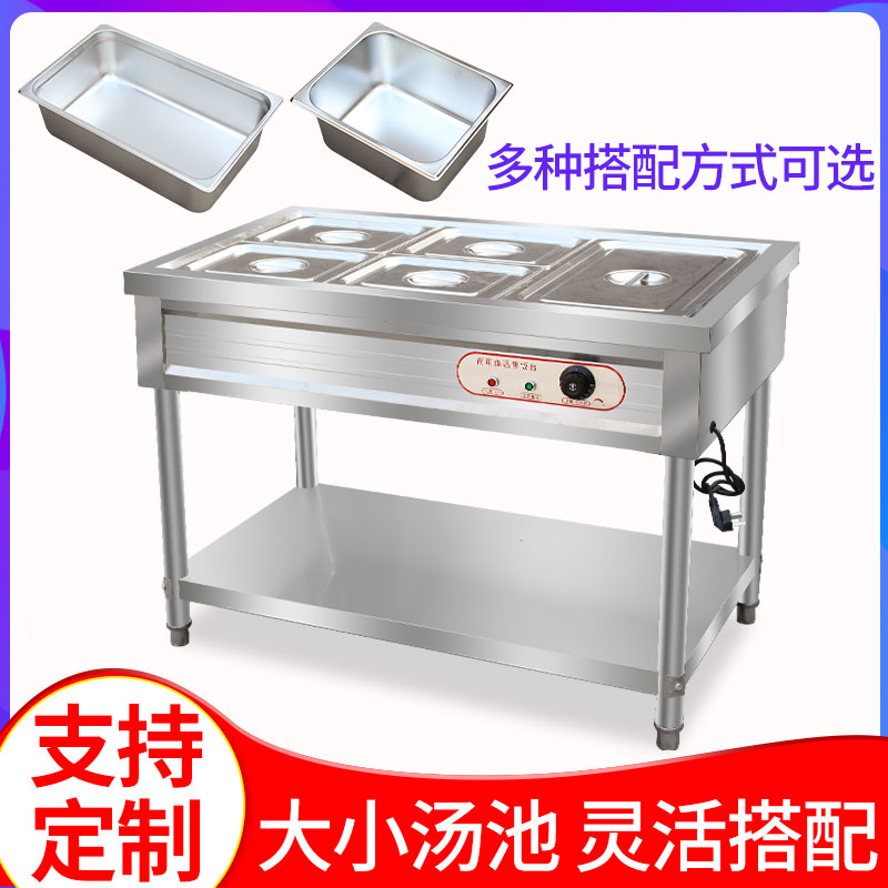 Commercial fast food insulation table stainless steel bench insulation soup pool cafeteria Multiple sales kitchen electric insulation platform