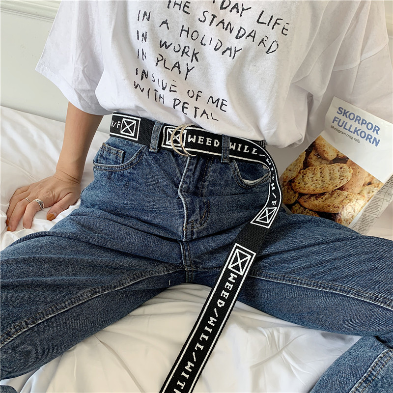 Korean personality casual canvas men's and women's youth belt fashion simple all-match student double ring jeans belt tide
