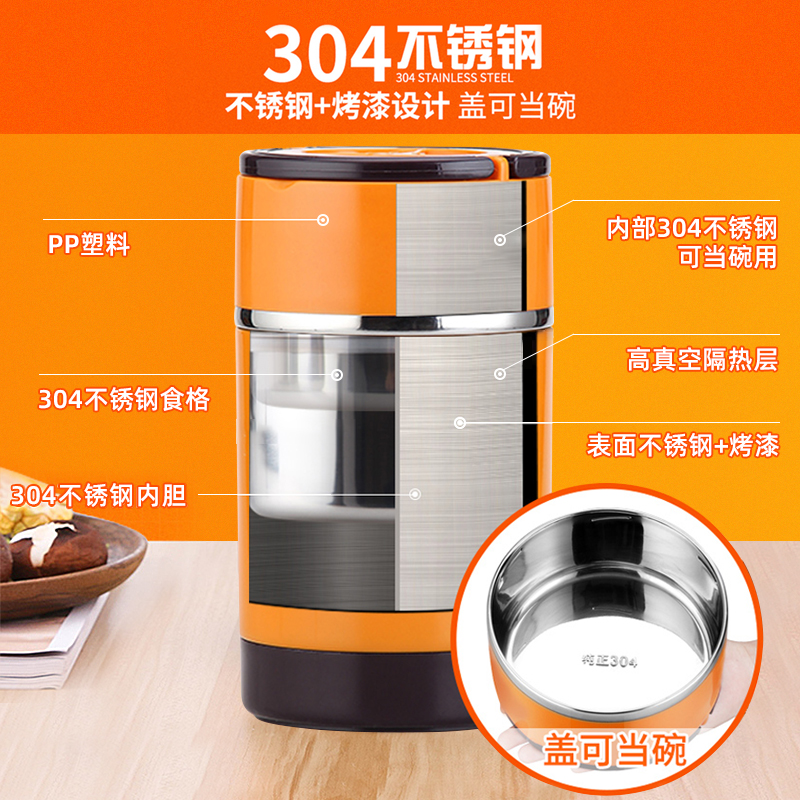 304 stainless steel multi - layer vacuum insulation lunch box portable 24 - hour handheld drum household large capacity