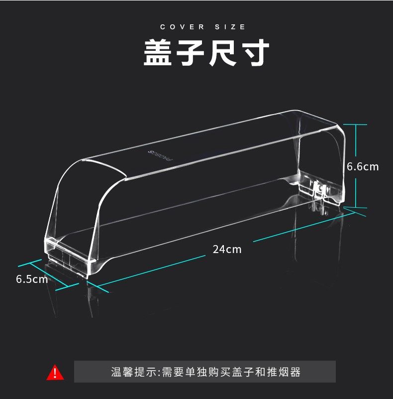 Smoke pusher dust cover 28CM can be installed dust cover bilateral 28CM pack 11 packs of cigarettes can be loaded with dust cover bilateral 24 CM pack 9 packs of smoke pusher dust cover 24CM smoke pusher contains dust cover length