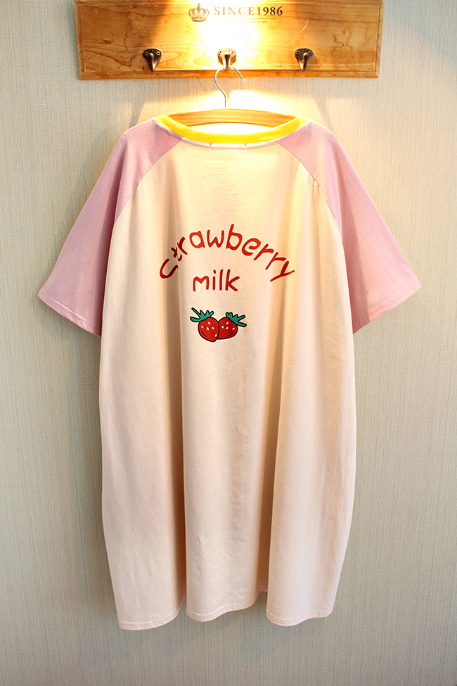 Milk strawberry color night dress-Blue milk strawberry color night dress-Pink milk strawberry long sleeve night dress