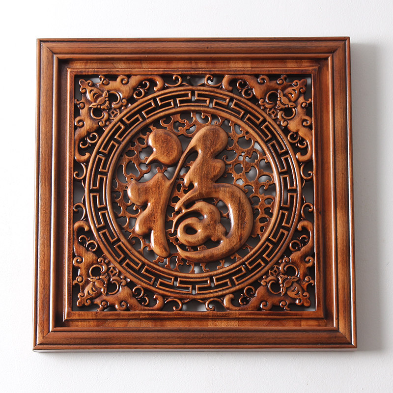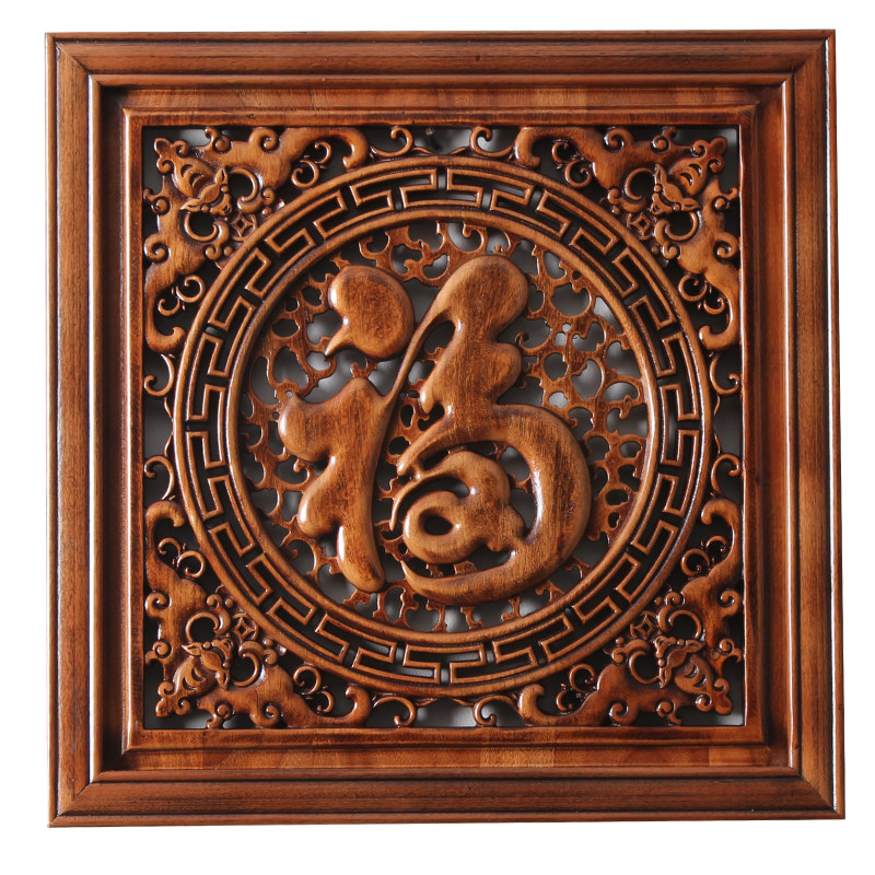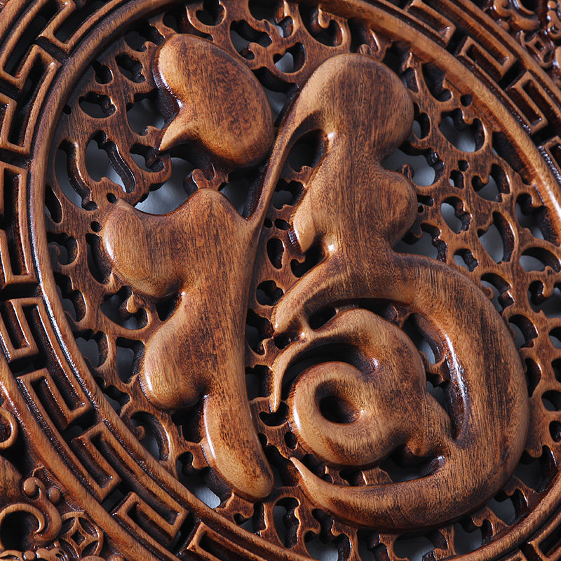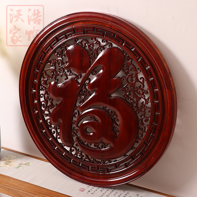 Dongyang wood carving camphor wood round blessing pendant living room porch sofa background wall Chinese decorative painting solid wood wall hanging