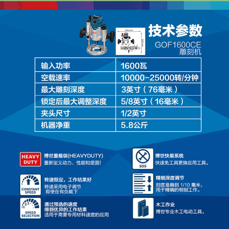 Germany Bosch high-power engraving machine Multi-function bakelite milling gong machine Trimming machine Slotting machine GOF1600CE