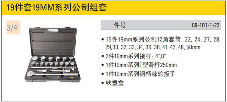 Stanley 19-piece set 19MM series metric set auto repair auto maintenance tool sleeve set 89-101-23C