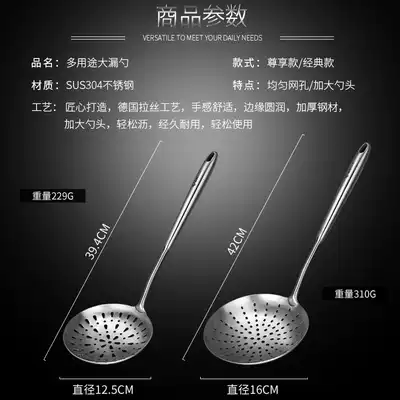Germany 304 large fishing spoon stainless steel colander household kitchen fried hot pot filter Spoon mixed noodles colander long handle